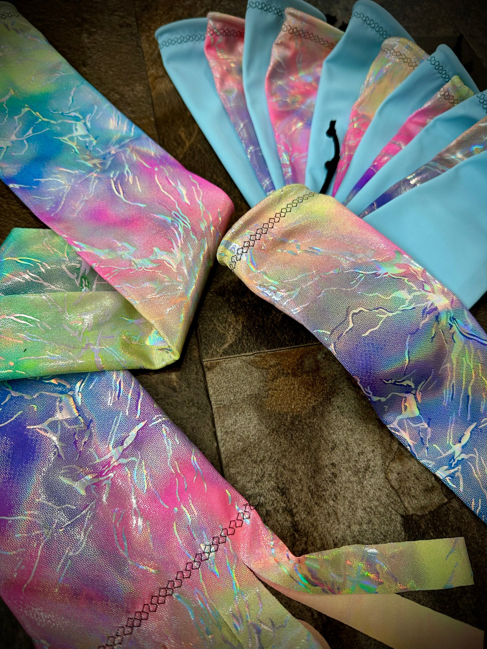 Matched Set - Set of 12 Mane Bags & 1 Tail Bag - Holographic Rainbow & Baby Blue - RTS