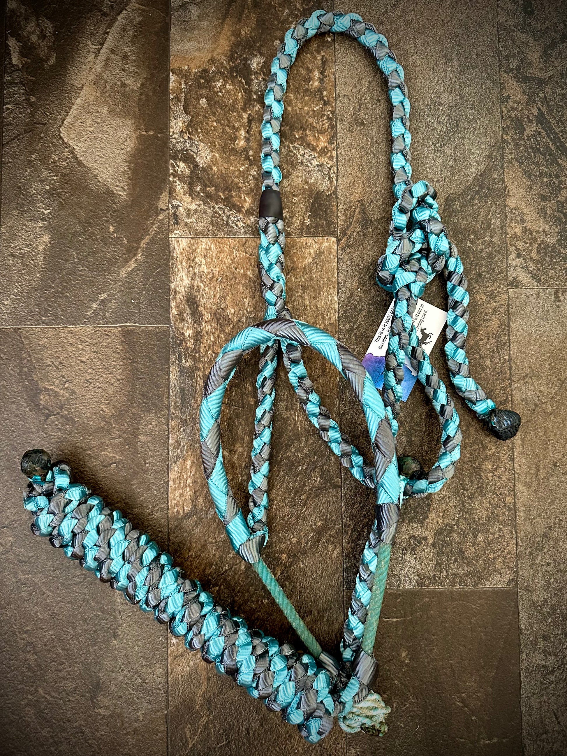 Muletape Braided Lariat Halter w/10’ Lead - Teal & Gunmetal Grey - RTS