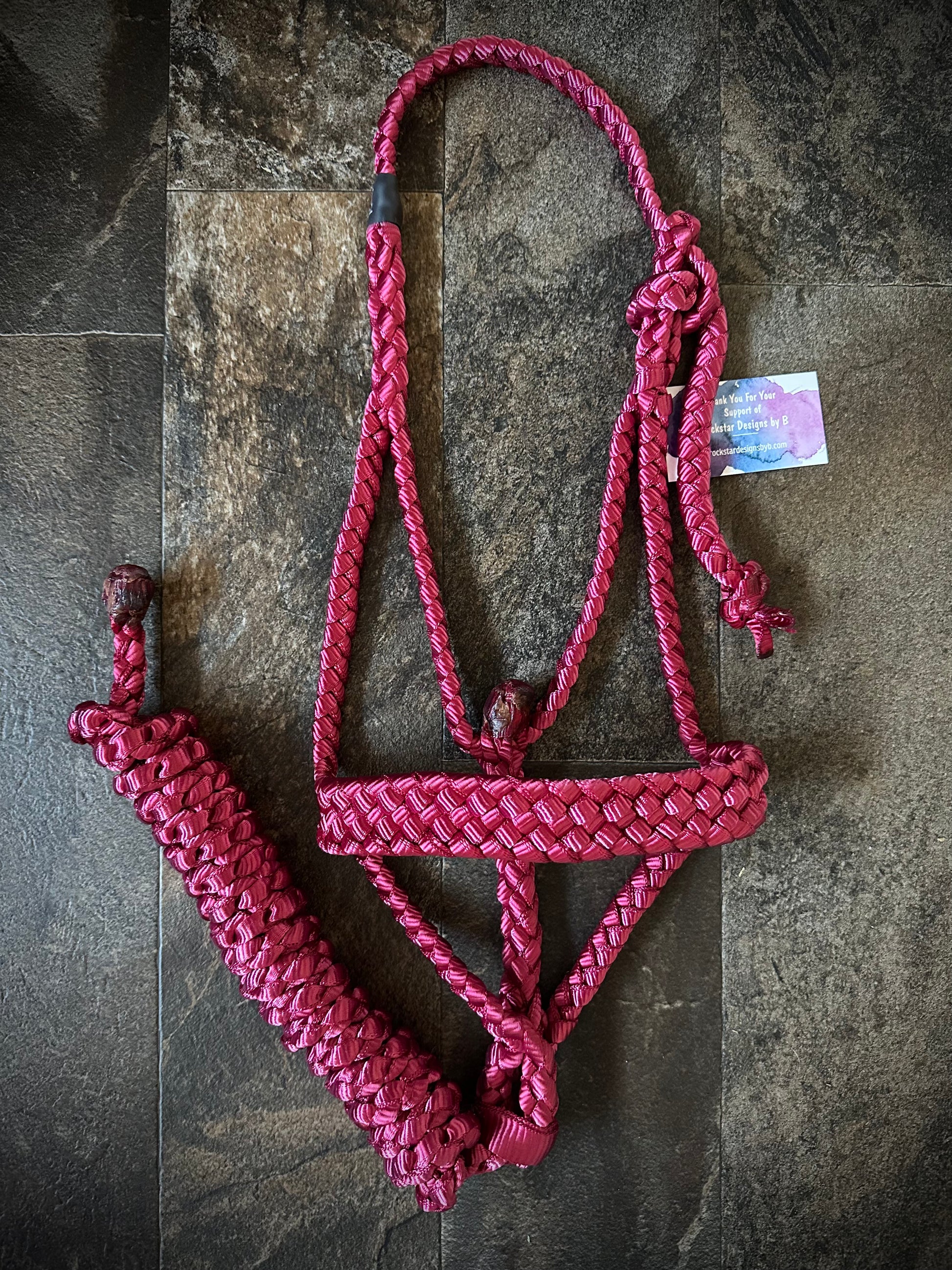 Each halter is hand braided and dyed right here in the beautiful southern Nevada desert with materials made in the USA.